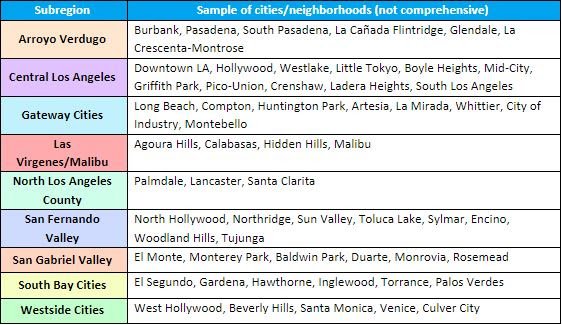 Arroyo Verdugo, North Los Angeles County, San Fernando Valley, and San Gabriel Valley.